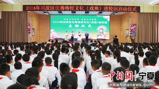 中新网宁夏新闻5月17日电 (记者 李佩珊 通讯员 乔占云)5月17日,宁夏银川市兴庆区2024年优秀传统文化(戏曲)进校园活动正式启动。本次活动由兴庆区委宣传部、兴庆区委统战部、兴庆区文化旅游体育广电局和兴庆区教育局主办,兴庆区文化馆、兴庆区图书馆和兴庆区实验第二小学教育集团臻园分校承办。