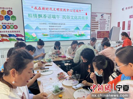 中新网宁夏新闻6月7日电 (记者 杨迪)6月6日,宁夏青铜峡市以铸牢中华民族共同体意识为主线,组织开展“粽情飘香话端午 民俗文化共传承”——我在新时代文明实践中心过端午活动,各族民众共度端午节,凝聚起温润心灵、引人向善的文明力量。