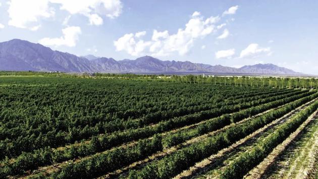 ▲贺兰山下葡萄园,染绿昔日戈壁滩。