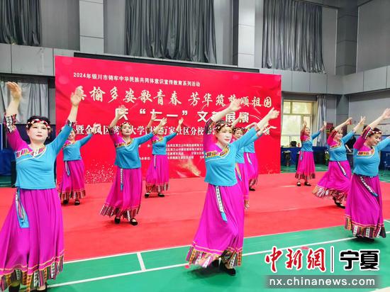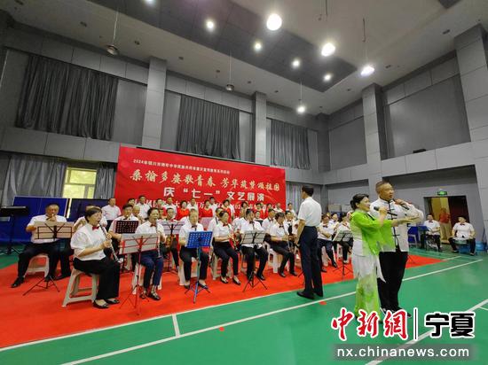 中新网宁夏新闻6月28日电 (记者 于晶)同歌共舞庆盛世,民族团结花长开。6月28日,宁夏银川市金凤区贺兰山中路阅海万家社区开展了以铸牢中华民族共同体意识为主题的“庆七一”文艺展演暨金凤区老年大学阅海万家社区分校2024年春季班期末汇演活动,给辖区居民群众带来了一场丰盛的文化“大餐”。