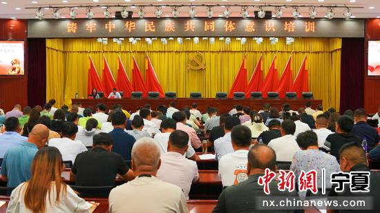 中新网宁夏新闻7月4日电 (记者 李佩珊 通讯员 乔占云)为提高基层干部理论素养,培养一支素质过硬、善思能讲的铸牢中华民族共同体意识宣讲员队伍,扎实开展“百场万人”大宣讲、深化兴庆区社会面宣传教育,推动各族群众“凝心聚魂”工程走深走实、见行见效,7月4日,宁夏银川市兴庆区举办铸牢中华民族共同体意识专题培训班,兴庆区各部门(单位)分管领导,各乡镇(街道)统战委员、统战专干,各村、社区书记200余人参加培训。