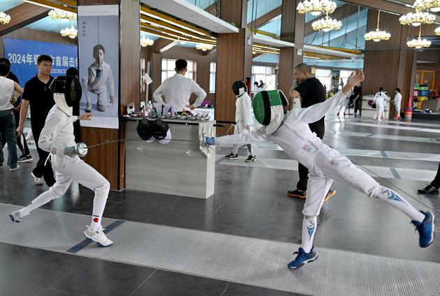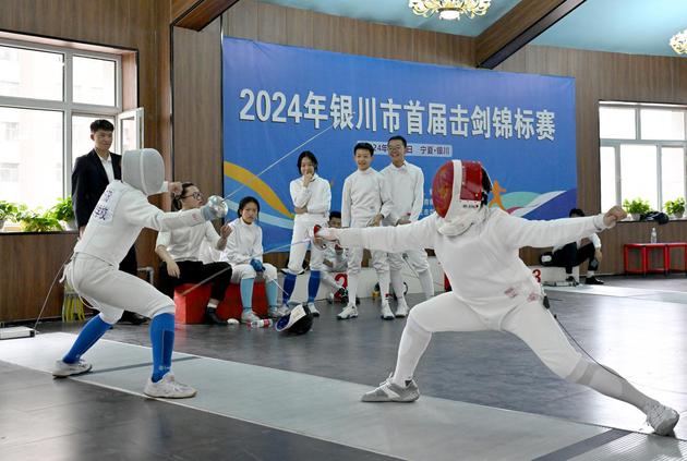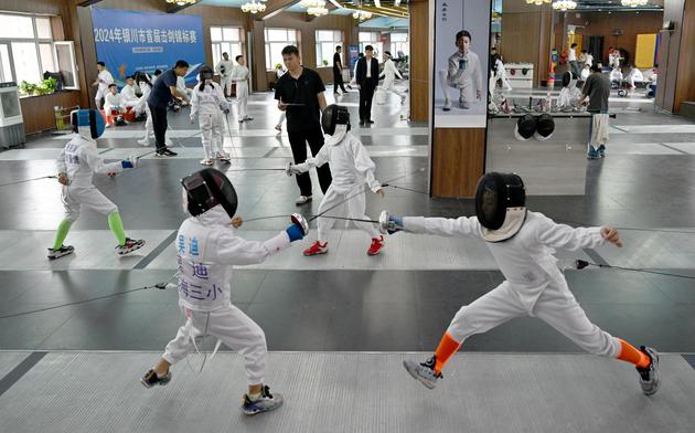 8月14日,剑客在男子重剑个人赛上演“剑锋对决”。当天,2024年银川市首届击剑锦标赛在银川开赛。本届赛事由银川市体育局、银川市教育局主办,设置了男子女子重剑,分为U6、U8、U10、U12、U14、U16共六个年龄组个人赛及团体赛,近百名运动员参赛。