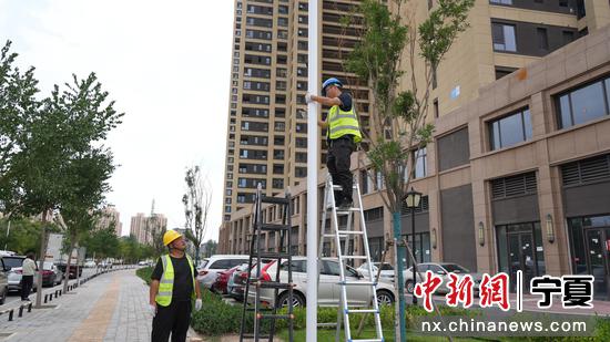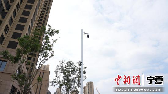 近日,在兴庆区中发街与永泰路交叉口,一根崭新的白色金属杆顶部已安装上智能监控摄像头。两名工人师傅正在组装太阳能板,将其加装到金属杆上,为监控设备提供电源。