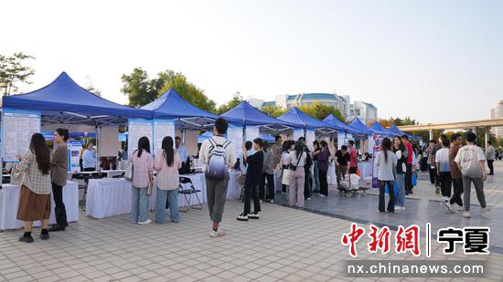中新网宁夏新闻9月26日电 (记者 李佩珊)9月25日晚,职引未来——2024年宁夏银川市兴庆区大中城市联合招聘高校毕业生秋季专场暨宁夏大学求是书院2025届毕业生“人才夜市”专场招聘会在宁夏大学举办。50家企业带着672个岗位现场“摆摊”招才,岗位覆盖医疗养护、装备制造、能源化工、现代服务等多个领域。