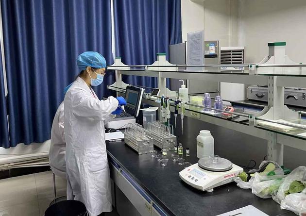 宁夏四季鲜农产品综合批发市场对农产品进行快速检测。