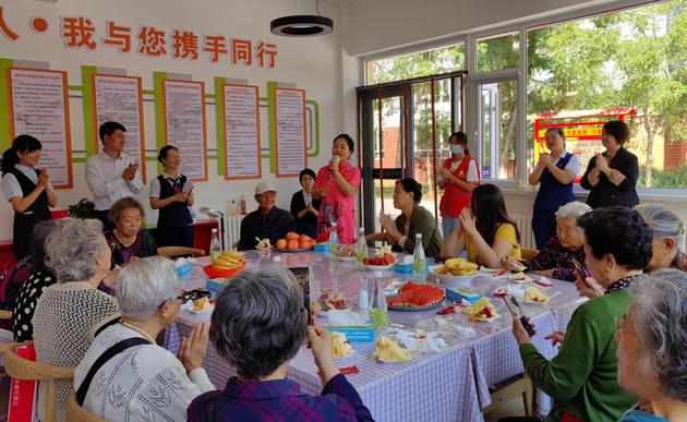 ▲长城花园社区居民在社区食堂里举办联欢会,唱响幸福生活。长城花园社区供图