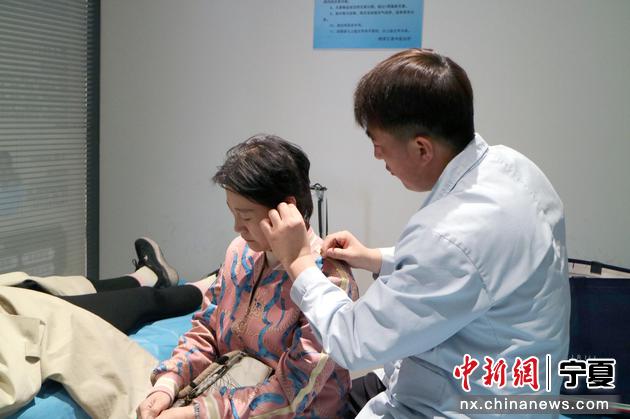 项目参与者现场体验耳穴埋豆。石羽佳 摄
