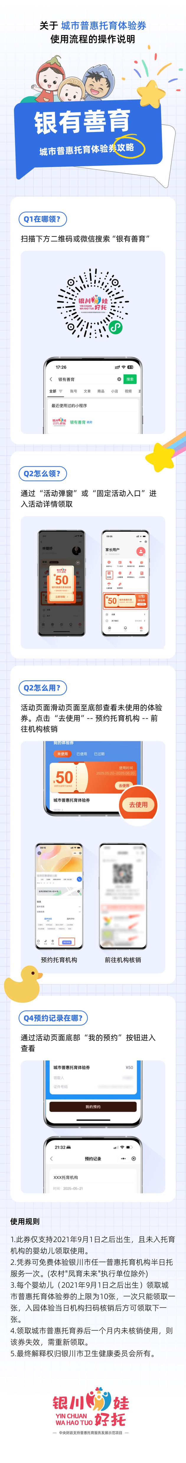 银川市卫生健康委制作的关于城市普惠托育体验券使用流程的操作说明。