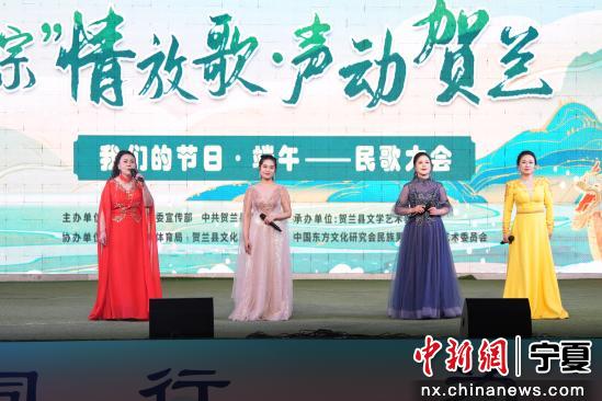 中新网宁夏新闻5月29日电 (记者 李佩珊 通讯员 尤国栋)近日,宁夏银川市贺兰县举办“粽情放歌 声动贺兰”民歌大会专场演出活动。演出以端午节为契机,将“黄河血脉”“花儿绽放”“民族交响”三大篇章串联,为观众献上了一场跨越地域、融汇多元文化的视听盛宴。