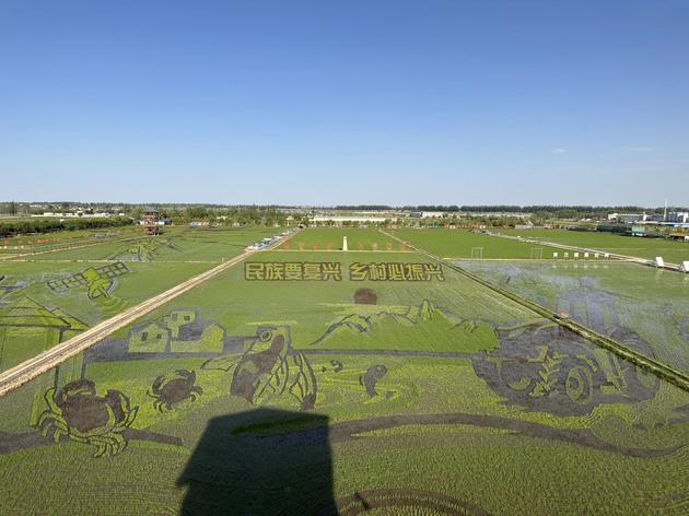 ▲银川市贺兰县稻渔空间乡村生态观光园里的巨幅稻田画。