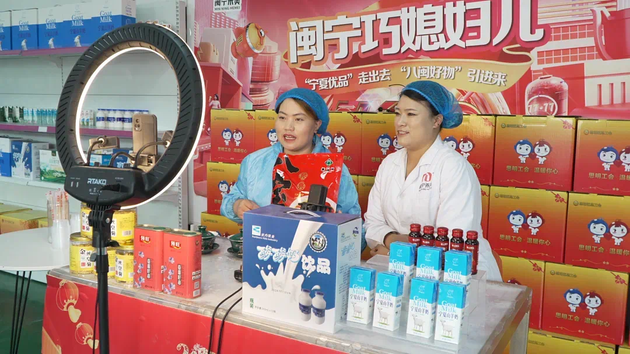 走进闽宁禾美电商帮扶车间,工人们正在生产线上忙碌着。车间负责人徐美佳介绍,车间成立于2019年,是宁夏第一个以电商为主题的帮扶车间,培育出“闽宁禾美”区域品牌和“闽宁巧媳妇”直播带货团队。2024年,该车间被评为“全球最佳减贫案例”。