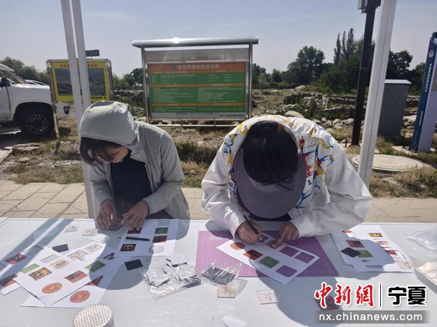 现场的珠宝鉴定站、岩画印记、冰箱贴DIY、立体底层瓶、非遗扎染等体验活动更是让大家时不时发出惊叹。“太神奇了!我好像穿越时空,和原始人面对面。”贺兰县第六小学六年级学生在专业的指导下,体验了岩画拓印技艺,亲手制作出属于自己的岩画纪念品。