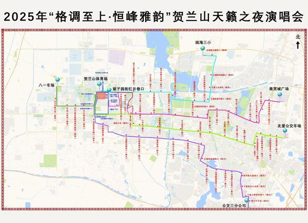 (1)集结路线:友爱公交车场—北京路—清和街—解放路—黄河路—通达街—北京路—金波街—贺兰山体育场西门。