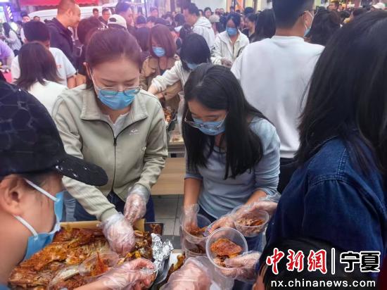 中新网宁夏新闻9月29日电(记者 于晶)近日,宁夏银川市金凤区长中路街道第二届“羊王盛宴”烤全羊节在烟墩巷翡翠印象商业街盛大举行。此次活动以羊肉美食为独特媒介,深度融合文化、商业与旅游元素,为市民精心打造了一场集味觉享受与视听娱乐于一体的消费盛宴,引燃了街区夜晚的蓬勃活力。