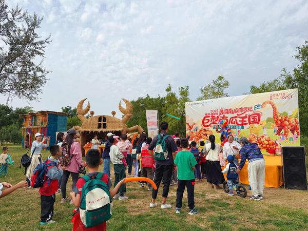 针对亲子家庭,鸣翠湖国家湿地公园打造“第二届巨型南瓜王国”主题展。用南瓜、稻草和玉米构建恐龙、绿野仙踪童话等场景,让游客都能在动手创作中感受农耕乐趣。