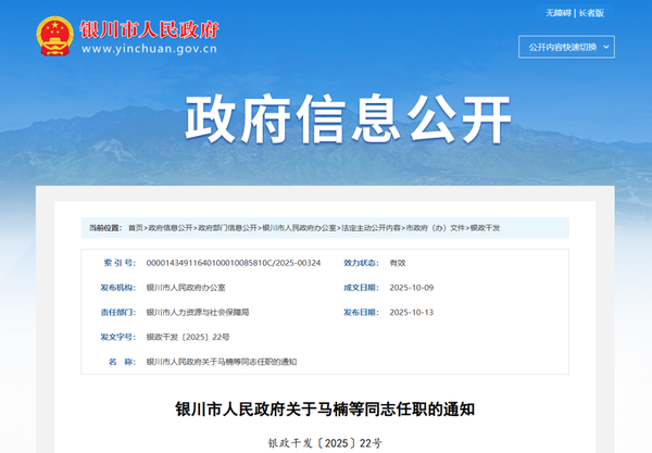 银川市人民政府关于马楠等同志任职的通知