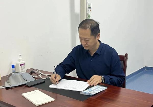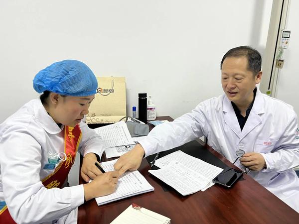 潘广玉指导固原市人民医院医务人员记录患儿检查资料。