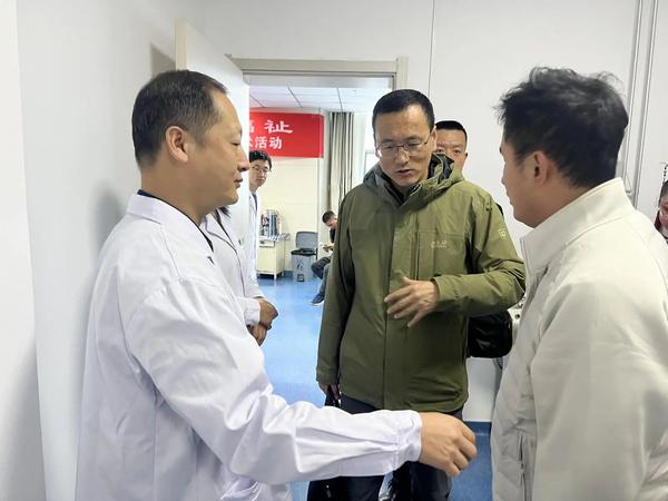 潘广玉和固原市人民医院工作人员沟通候诊注意事项。
