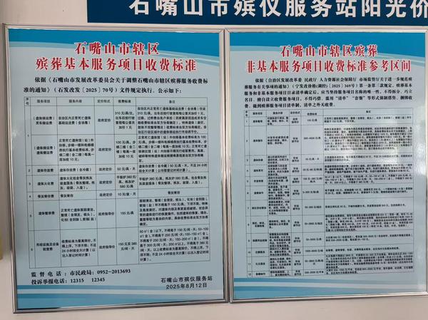 石嘴山市推行收费清单制,全市7家殡仪馆(服务站)于8月12日全部完成收费备案公示,并建立“6+21”殡仪服务阳光公示体系。即保留6项基础服务、规范21项非基本服务,每一项都有统一的价格区间,让群众消费明明白白。“现在我们为一位逝者举办的葬礼,只收基本服务、必要用品等费用约1300元。”工作人员徐甄说,这次整治取消暖气费、空调费等20项收费项目,下调主持费、电子挽联等11项收费标准后,群众办丧成本大幅降低。
