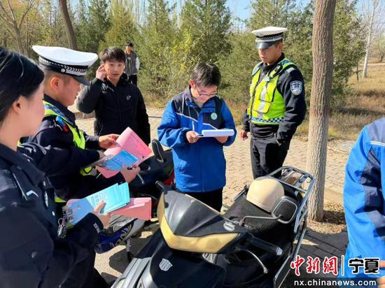 中新网宁夏新闻10月30日电 (记者 杨迪)10月29日,宁夏盐池县公安局交管大队聚焦“一盔一带”安全守护重点,在辖区内集中开展电动车不正确佩戴安全头盔专项整治行动,以“严查管控+多元宣教”的组合举措,筑牢群众出行“安全防线”。