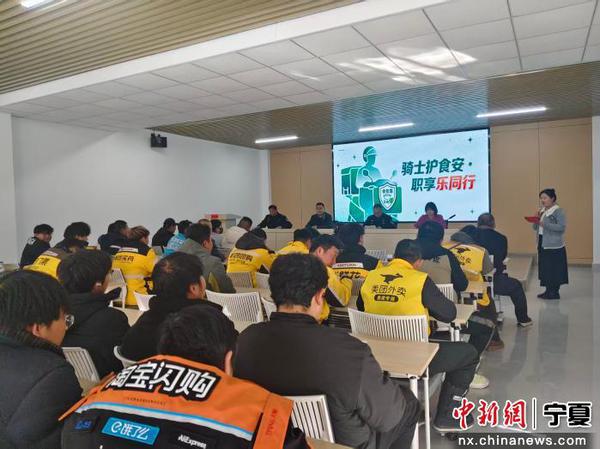 中新网宁夏新闻11月26日电 (记者 杨迪)11月25日,宁夏青铜峡市委社会工作部、市场监督管理局举办“骑士护食安・职享乐同行”主题活动,外卖骑手、社区工作者、辖区志愿者等50余人参加。
