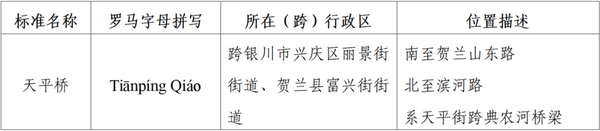 12月26日,银川市民政局发布公告,关于“天平桥”命名。