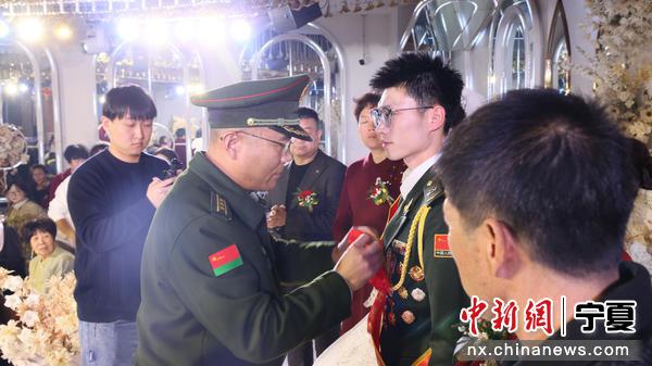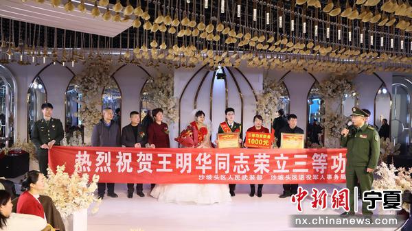 中新网宁夏新闻1月27日电(胡耀荣)红绸高挂,喜乐声声。1月26日,沙坡头区现役军人小王的婚礼现场洋溢着双重喜悦——除了新婚之喜,他还收到了来自部队的两份沉甸甸的荣誉:战备训练三等功和“四有”优秀士兵喜报。沙坡头区人武部、退役军人事务局主要领导专程来到婚礼现场,在亲朋好友的见证下为这对新人送上了一份特殊而光荣的新婚礼物。
