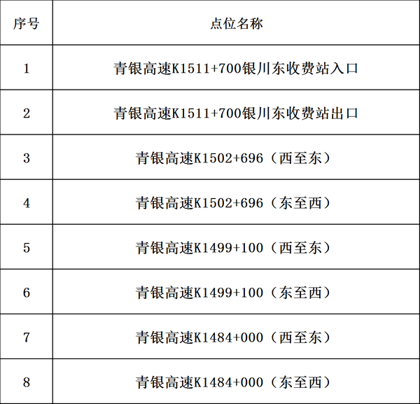 为进一步规范恶劣天气下的可变限速管理,全力保障高速公路安全、畅通、有序通行。银川市公安局交通管理局根据《中华人民共和国道路交通安全法实施条例》等有关法律法规规定,结合实际道路情况,决定自2026年2月6日起启用8处单点、4处区间可变测速设备,日常情况下道路限速120km/h,冰雪天气期间道路限速60km/h,现将具体点位公示如下: