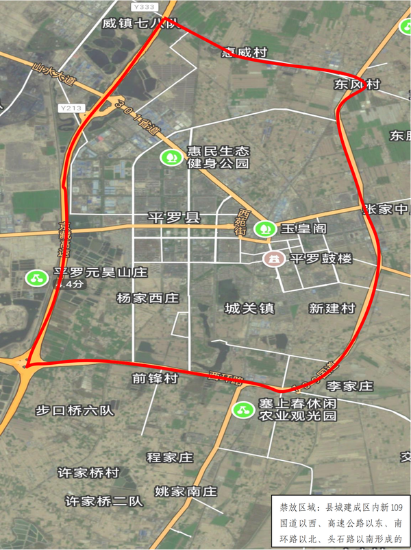 平罗县烟花爆竹禁限放区域示意图。
