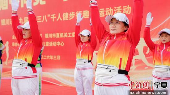 中新网宁夏新闻3月6日电 (记者 杨迪)3月6日,银川市第九届庆“三八”千人健步行趣味运动活动在当地举办,1300名来自银川市行政机关、企事业单位的女性职工及妇女群众齐聚一堂,以健步前行的姿态纪念第116个“三八”国际妇女节,同时为“运动迎新春 健康启新程”2026年宁夏全民健身大拜年系列活动画上句号。