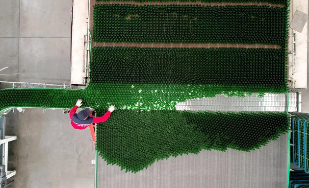 宁夏金莱特新材料科技有限公司生产车间,一排排新鲜“出炉”的玻璃瓶经过退温,顺着传送带进入质检环节。