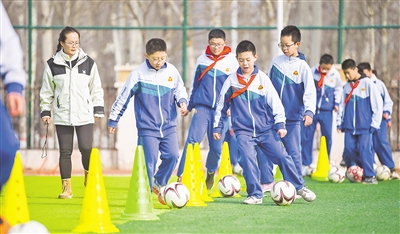 课间活动,足球小将跑起来。