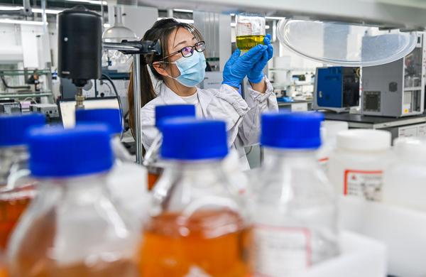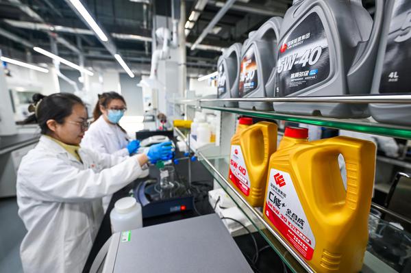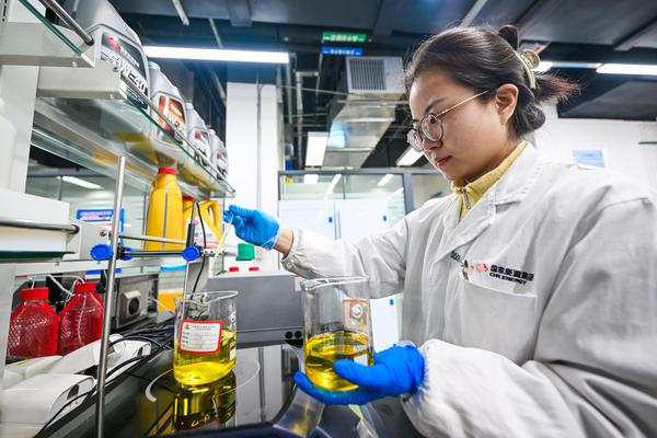 宁夏煤业公司煤炭化学工业技术研究院润滑油开发室内,工作人员正在进行润滑油运动黏度指标检测。