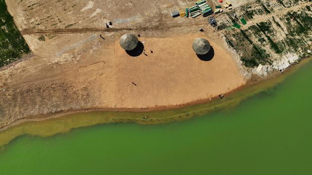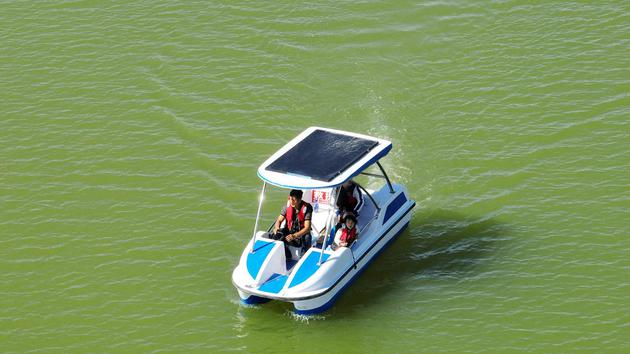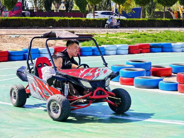 记者现场看到,游乐园正在施工,安装护栏等工作正在紧张进行。湖岸上还有非常适合亲子游的乐园,有小火车、儿童穿梭、充气城堡等游玩设施。不远处,还有游客开着游船在湖面上乘风破浪,获得酣畅淋漓的游玩体验。