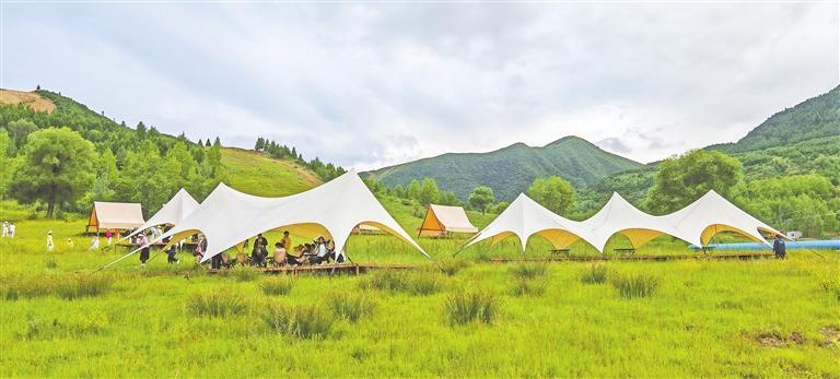 7月8日,游客在泾源县雅豪度假区露营。盛夏时节,泾源县凭借清凉气候成为众多区内外游客心仪的避暑度假目的地。通讯员 丁贵明 摄