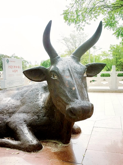 汉惠闸前的唐代镇河牛。