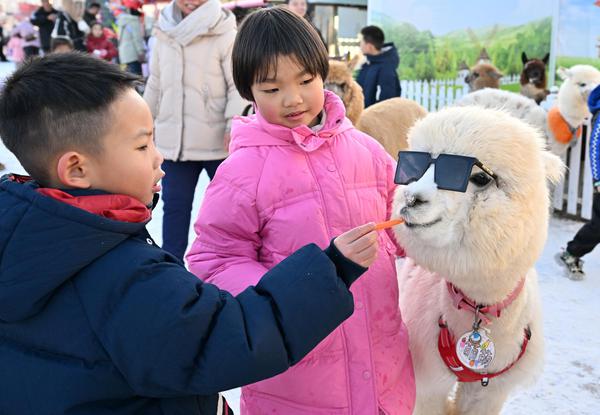 小朋友与可爱的羊驼亲密接触。