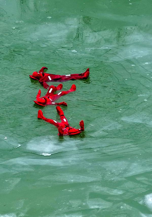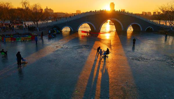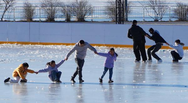 在冬日暖阳下,享受冰面的快乐。
