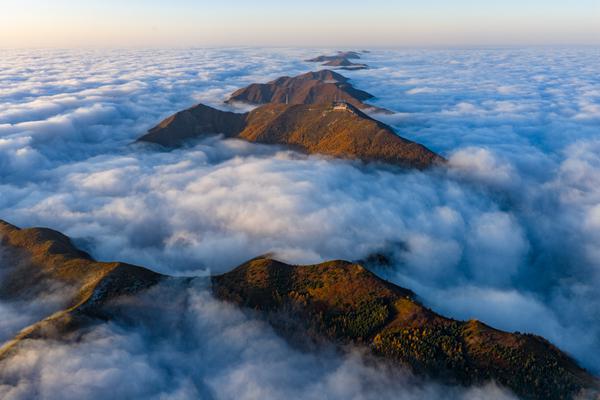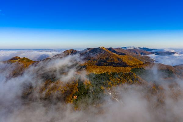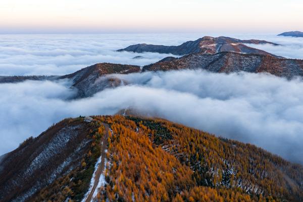 秋到六盘山,仿佛踏入了一幅绚丽的画卷。山峦被秋色浸染,金黄与深绿交织。云海翻腾,如白色的浪涛在山间涌动,时而将山峦遮掩,时而又悄然退去。当夕阳西下,余晖洒在云海与山林间,如梦如幻。 宁夏新闻网记者 祁瀛涛 摄