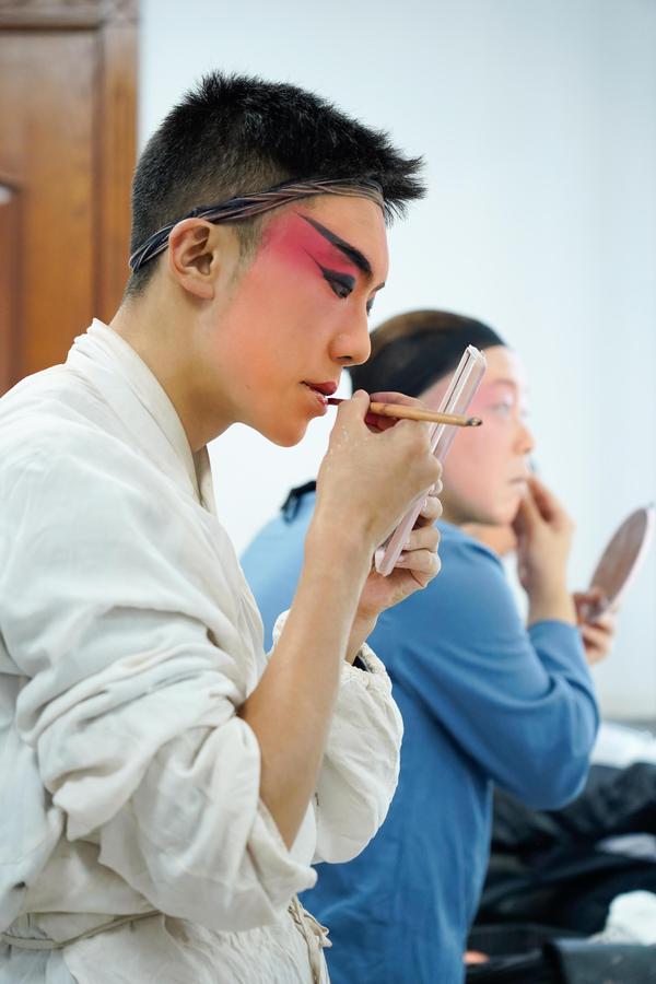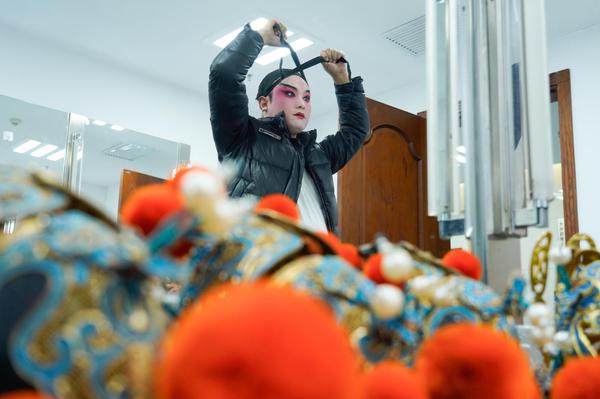 化妆间内,演员们正为《赵五娘》的演出做最后准备。