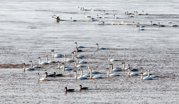 10月29日,石嘴山市惠农区迎河湾湿地公园,一群天鹅在水面上游弋起舞。据悉,该湿地公园内二级保护动物灰鹤的数量从8年前的50余只增至5000余只,天鹅从5年前的6只增至1000余只。近年来,惠农区持续加大湿地及野生动物栖息地保护力度,现已建成1个国家级湿地公园、2个自治区级重要湿地,并发布一般湿地名录,构建起层次清晰、覆盖全面的湿地保护体系。记者 王晓龙 白茹 见习记者 符雨潇 实习生 付冰 摄
