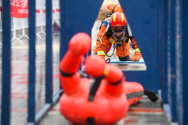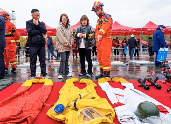 现场还展示了消防水带、空气呼吸器、隔热服、破拆工具组、消防无人机、应急救援担架等装备,消防员为市民讲解装备功能及使用场景。居民楼、商业综合体逃生模型展示,模拟了火灾发生时的正确逃生方法。