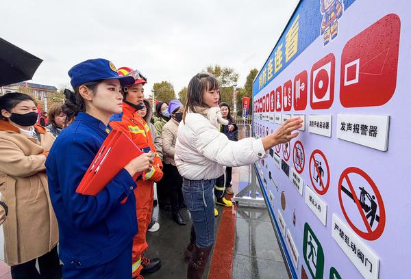 在消防科普教育体验互动环节,设置了多个体验区。灭火器体验区配备干粉及二氧化碳灭火器等,由消防员教授群众学会灭火器日常检查方法并进行使用体验;消防服装体验区摆放各类消防服装,消防员演示正确穿着方法后,引导大家进行穿戴体验;逃生体验区设置烟雾逃生帐篷,让群众亲身感受烟雾逃生的过程。