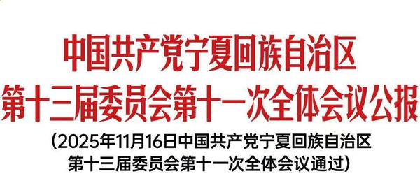 中国共产党宁夏回族自治区第十三届委员会第十一次全体会议,于2025年11月16日在银川举行。