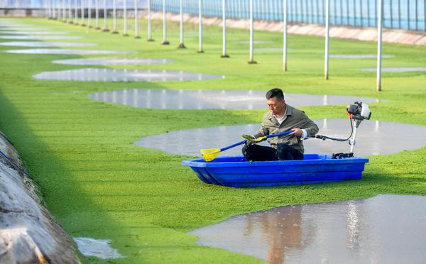 石嘴山市大武口区星海镇,宁夏牧丰农业发展专业合作社在盐碱地上搭建温棚,养殖澳洲龙虾、南美对虾等。