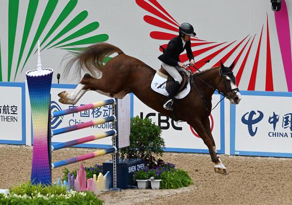 11月19日,第十五届全国运动会马术比赛场地障碍个人赛决赛在深圳市光明国际马术中心撒缰。经过两轮角逐,最终宁夏代表团姜志祥策骑马匹“凤舞九天”拼得第13名,在全运会马术赛场,他们与来自全国各地的高手同台竞技,展现了宁夏队的风采。
