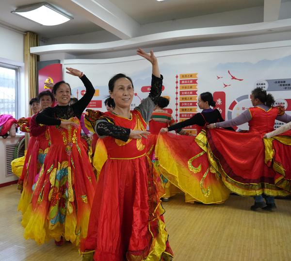 居民们自发组成“共享蓝天”舞蹈团,不同民族的居民们以“舞”会友,其乐融融。