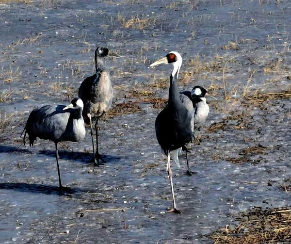 “全世界共有15种鹤,中国有9种,在惠农区我就拍到了5种。”陈小组如数家珍:丹顶鹤、灰鹤、蓑羽鹤、白枕鹤、白头鹤。