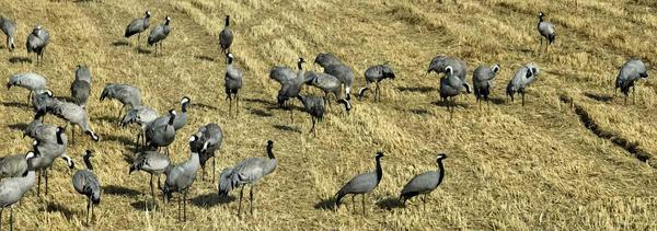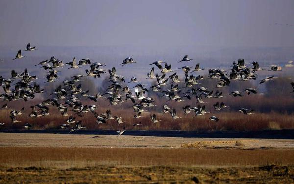 2025年11月20日下午,摄影爱好者陈小组像往常一样前往黄河湿地拍摄灰鹤。驱车往返80公里未见到灰鹤的踪迹,他转而前往石嘴子黄河湿地林场碰运气。在一片收割后的稻田和黄河滩涂上,他发现了成群的豆雁与灰鹤。
