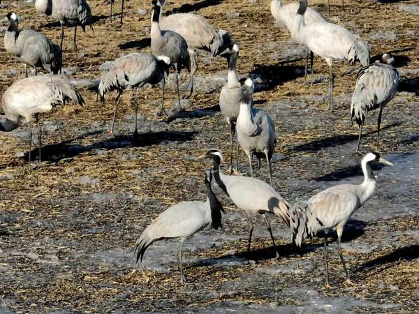 陈小组的“鸟类档案”远不止于此。自2020年12月首次在石嘴山黄河流域湿地拍摄到国家一级保护动物白枕鹤以来,他连续3年跟踪记录到它的身影。2022年冬天,他又在银河湾的稻田里捕捉到另一国宝——白头鹤的影像,此后两年多次记录到它与灰鹤群共同活动。